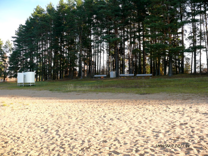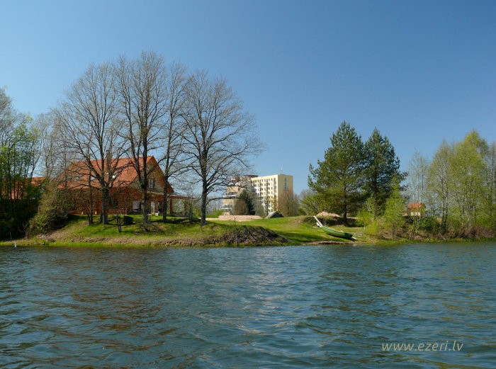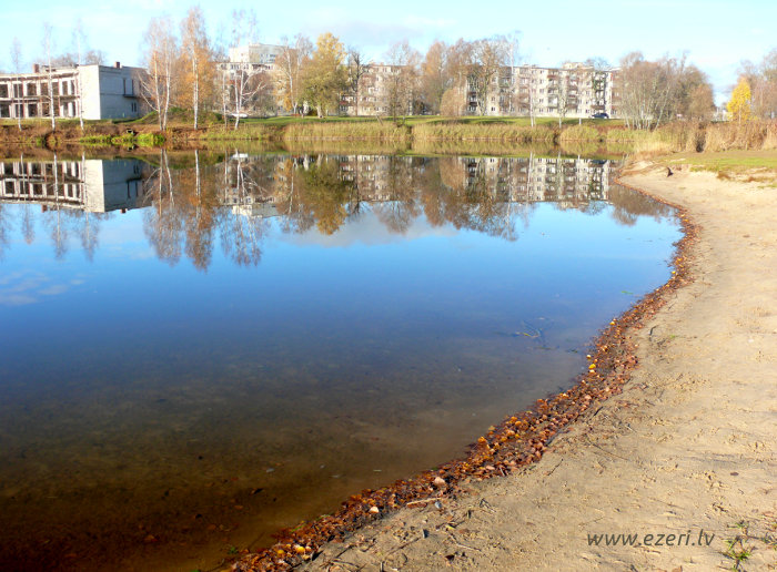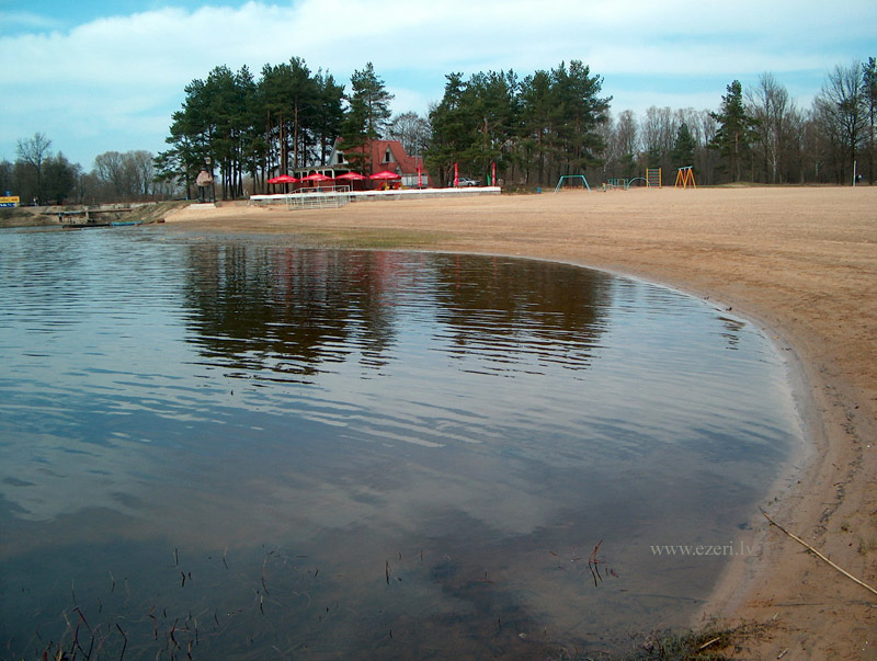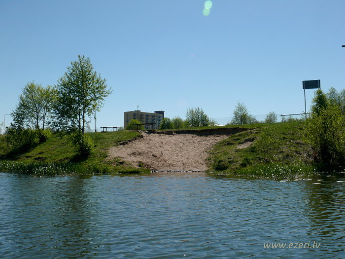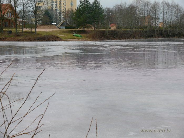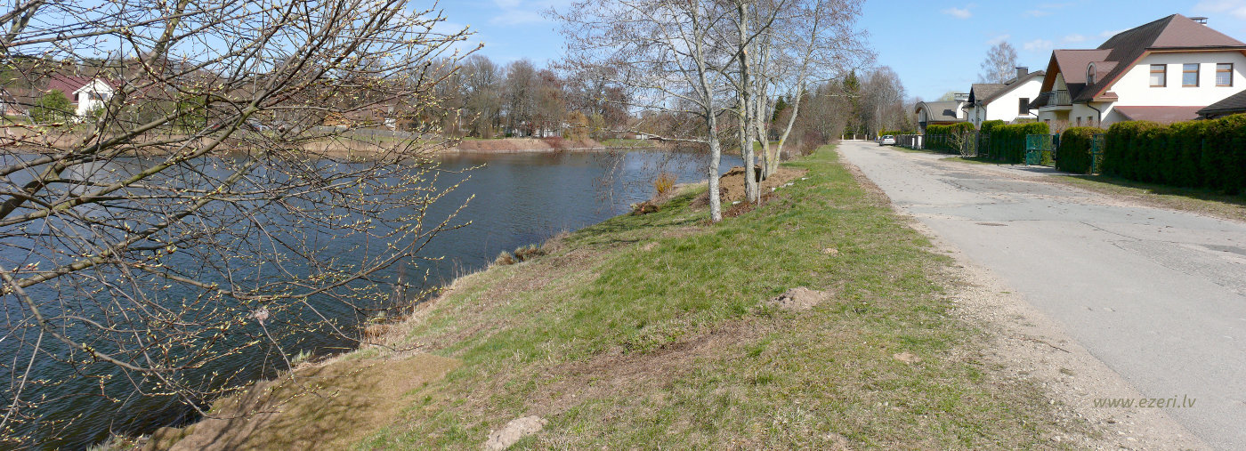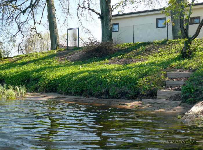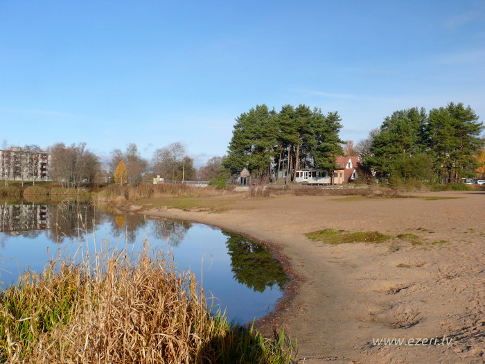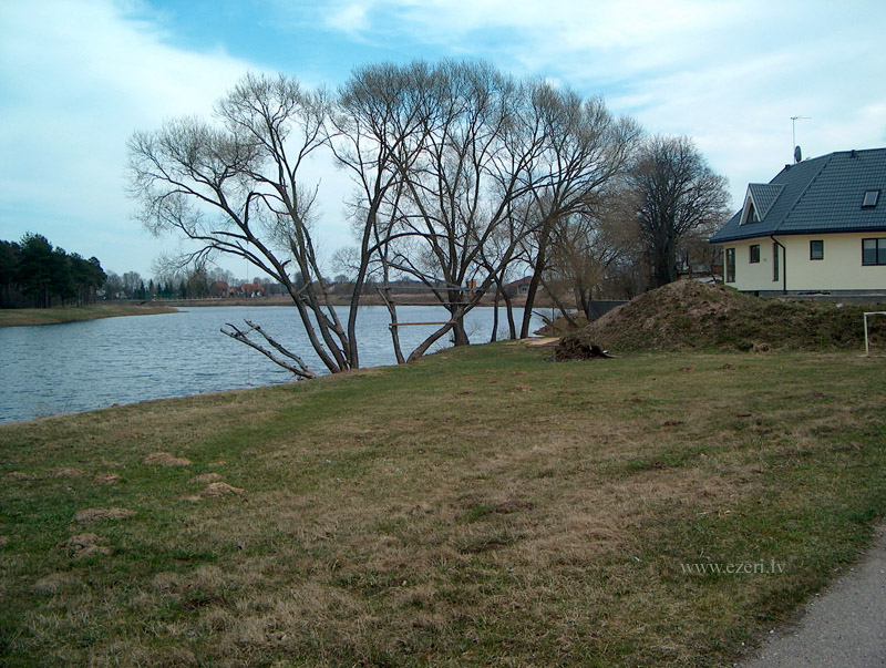 photograph Trešās daļas krasts. Starp apbūvi un ezeru ir iela. Krasts brīvi pieejams. |