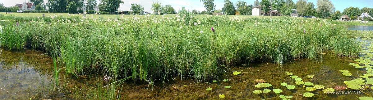 photograph Vējupes 3.daļa. Biogēnu izvākšanas efektu var panākt, ja aizvāc nopļautās virszemes ūdensaugu daļas no krastmalas. |