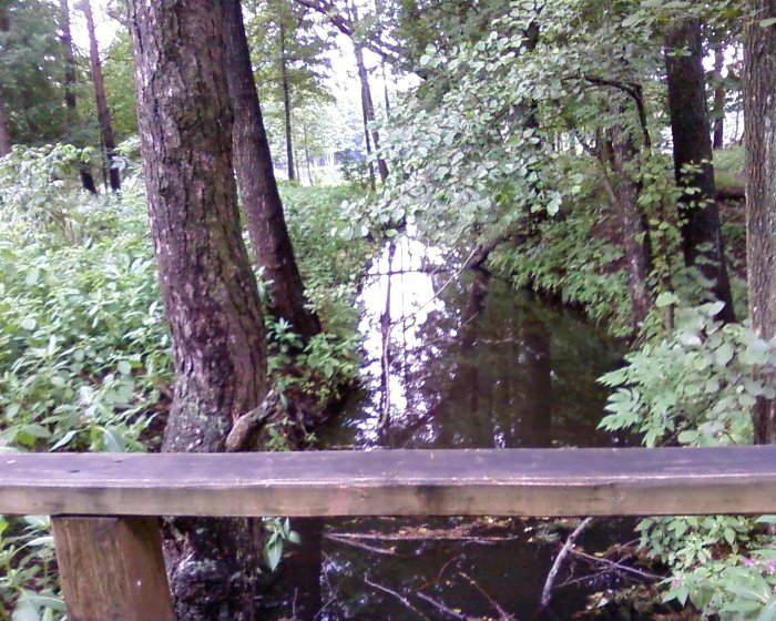 photograph Gaiļupīte lejpus aizbērtās iztekas vietas. Redzama caurule, pa kuru vecajā gultnē ietek ap ezeru apvadītais upītes ūdens. |