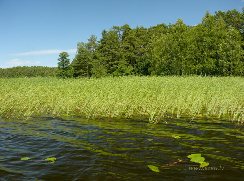 photograph A piekrastē - minerālgrunts. Piekraste aizaugusi ar niedrēm. |