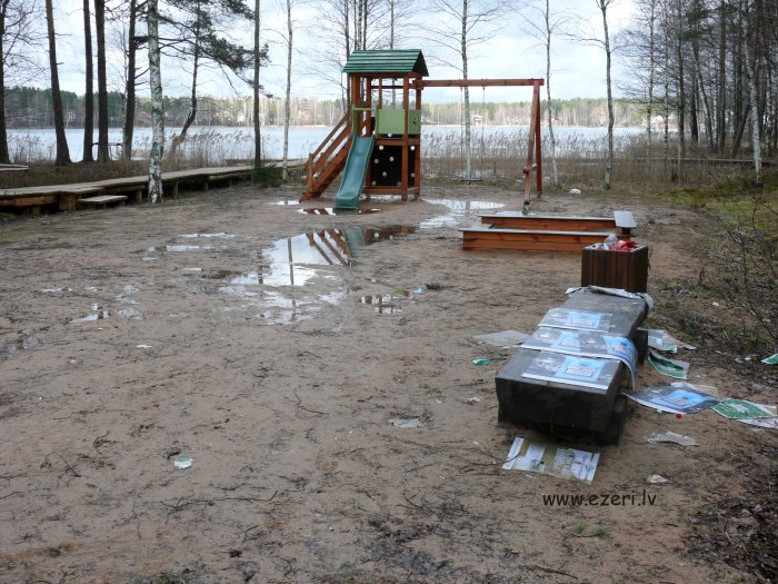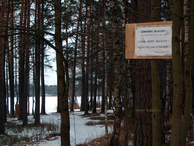 photograph Uzraksts vēl joprojām brīdina (arī ziemā) par zilaļģu draudiem. |
