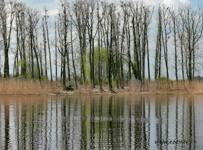photograph Priežu salas melnalkšņi un pērnās niedres. |