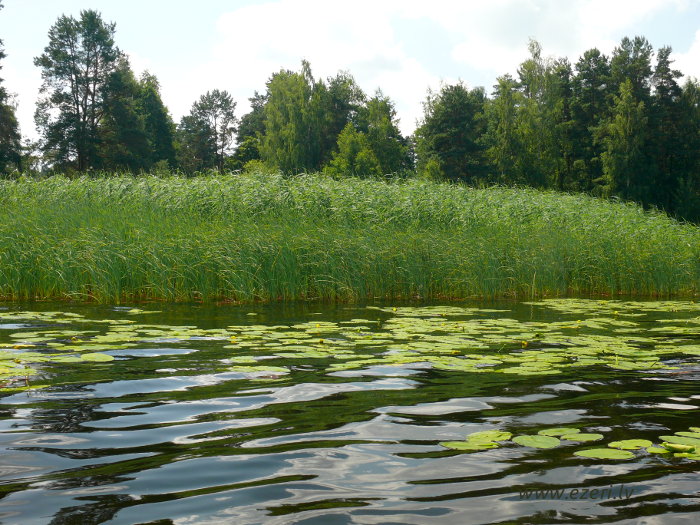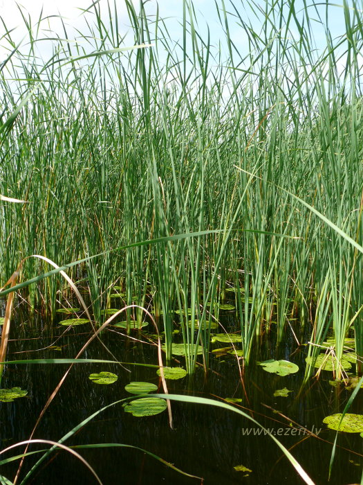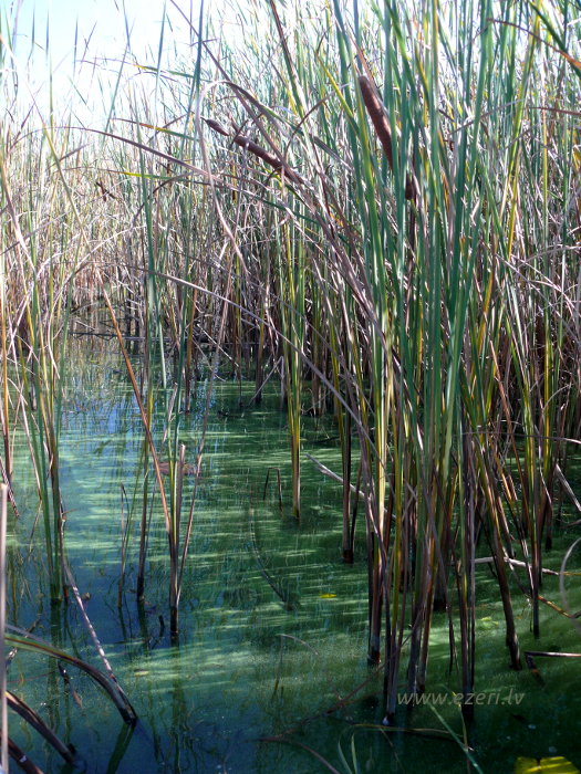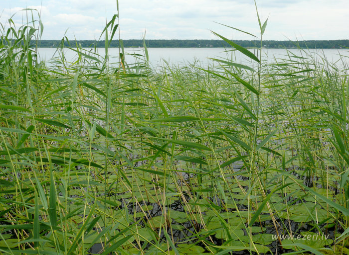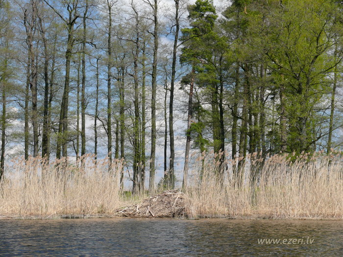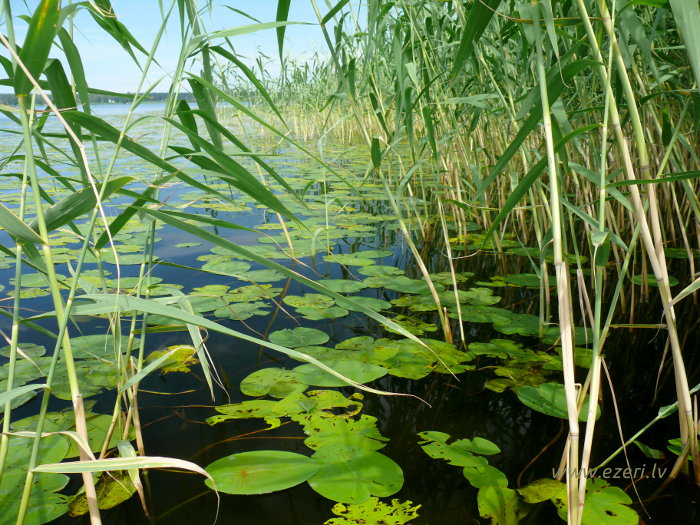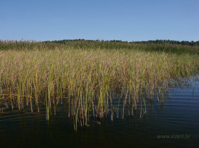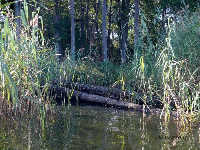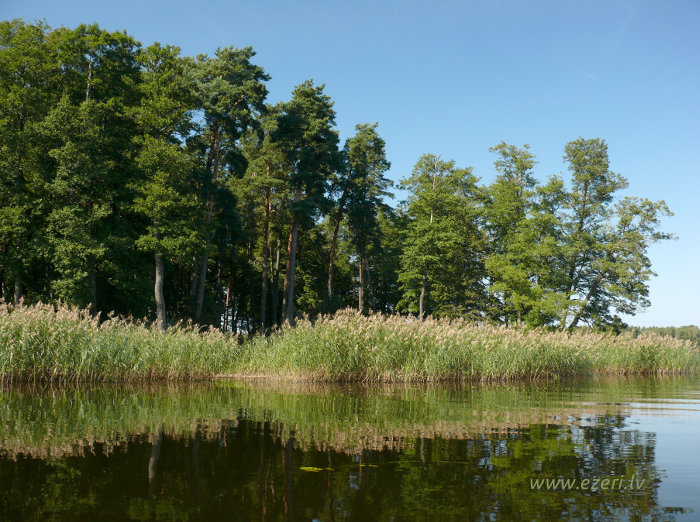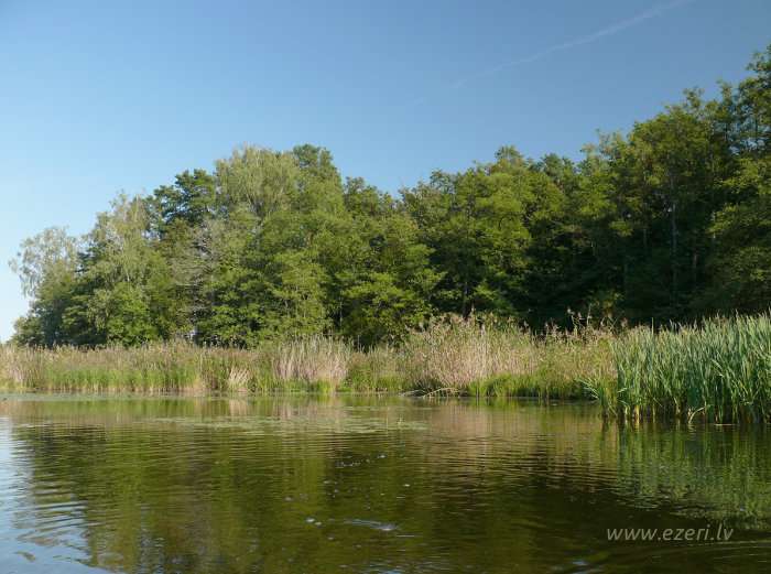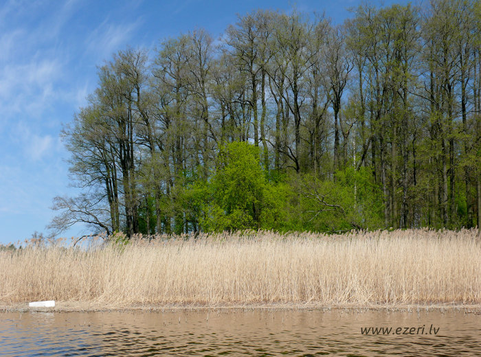photograph Meldru sala ir sēklis, apaudzis ar niedrēm un vilkvālītēm. |