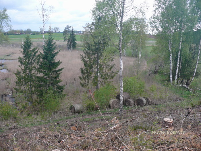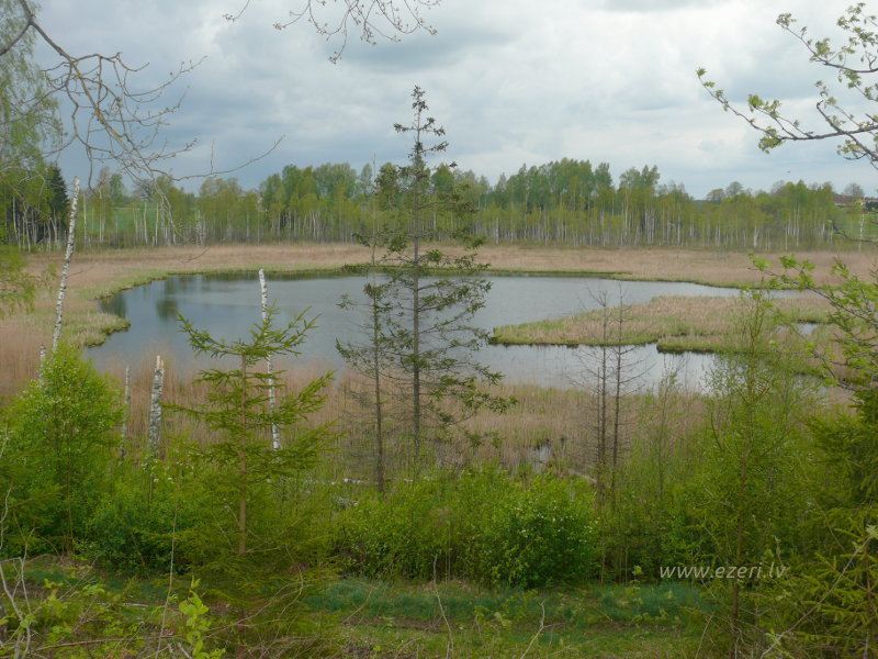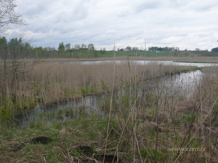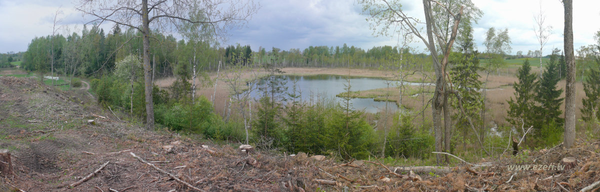 photograph Skats no A krasta paugura. Apkārtnes meliorācijas ietekmē pazeminājies ezera līmenis. Apkārt ezeram izveidojies zems, slīkšņains krasts. |